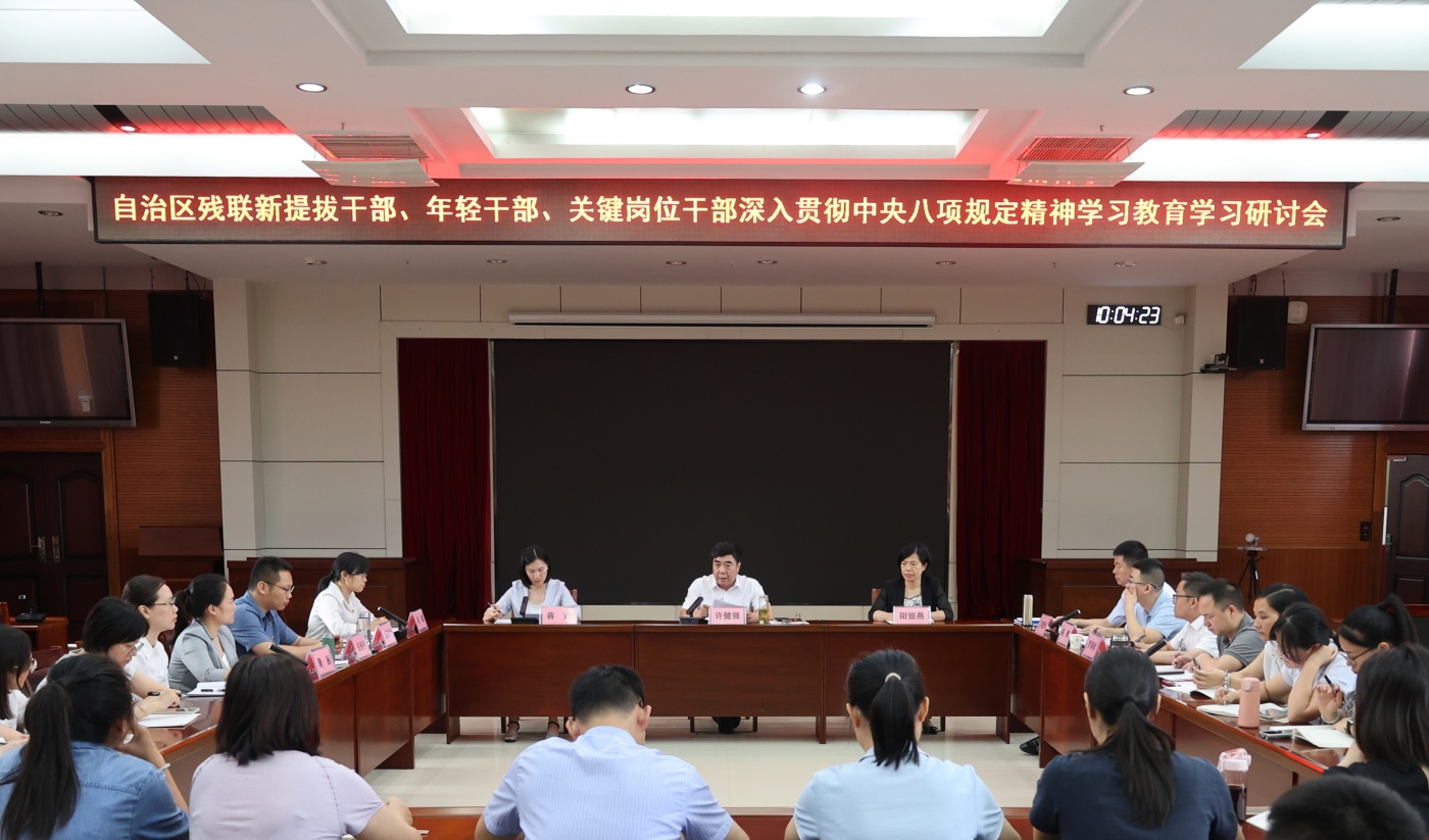 6月18日,自治區(qū)殘聯(lián)召開新提拔干部、年輕干部、關鍵崗位干部深入貫徹中央八項規(guī)定精神學習教育學習研討會。會黨組成員、副理事長、一級巡視員許健強出席會議并講話,強調(diào)以作風建設為抓手鍛造過硬干部隊伍,推動殘疾人事業(yè)高質(zhì)量發(fā)展。