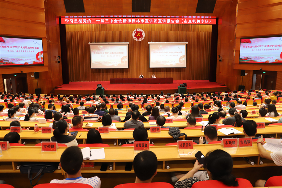 9月12日,桂林市委宣傳部、市委市直機關(guān)工委在桂林市會議中心大禮堂聯(lián)合舉辦學習貫徹黨的二十屆三中全會精神桂林市宣講團宣講報告會暨市直機關(guān)“黨課大講堂”第四期專題黨課,進一步推動全市學習宣傳貫徹全會精神走深走實、見行見效。市委市直機關(guān)工委分管日常工作副書記(正處長級)、一級調(diào)研員葉琴主持宣講報告會。