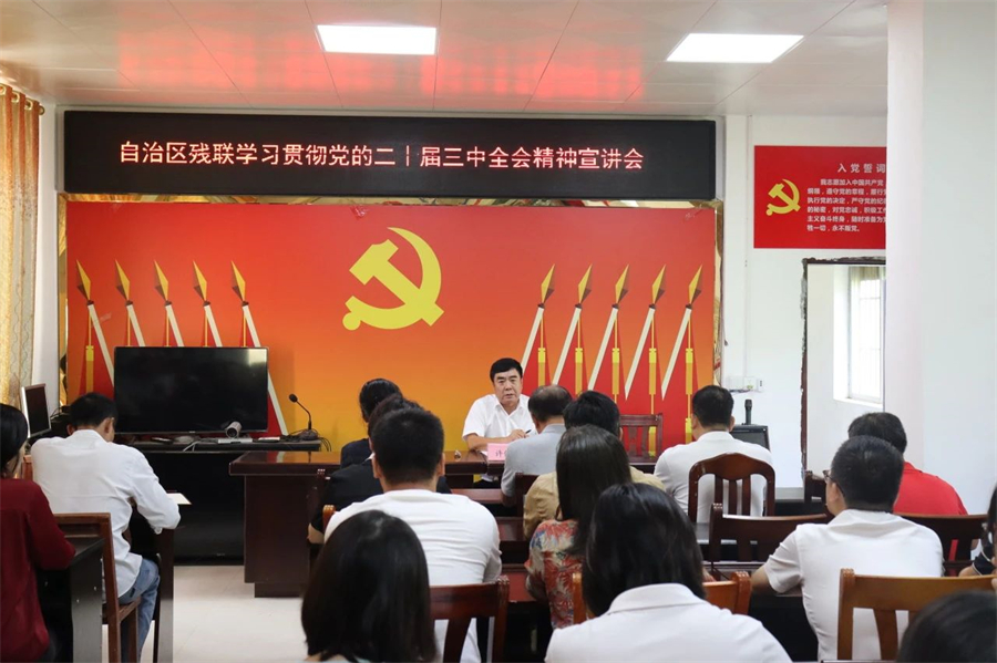 當(dāng)天,許健強(qiáng)向自治區(qū)殘聯(lián)、望朝村、南興村黨員代表宣講了黨的二十屆三中全會(huì)精神。他指出,要深入學(xué)習(xí)貫徹黨的二十屆三中全會(huì)精神和《中共中央關(guān)于進(jìn)一步全面深化改革、推進(jìn)中國(guó)式現(xiàn)代化的決定》部署,深入學(xué)習(xí)貫徹落實(shí)習(xí)近平總書(shū)記在全會(huì)上的重要講話精神,切實(shí)把思想和行動(dòng)統(tǒng)一到黨中央決策部署上來(lái),不斷推動(dòng)殘疾人事業(yè)高質(zhì)量發(fā)展,持續(xù)鞏固拓展脫貧攻堅(jiān)成果,扎實(shí)推進(jìn)鄉(xiāng)村振興。