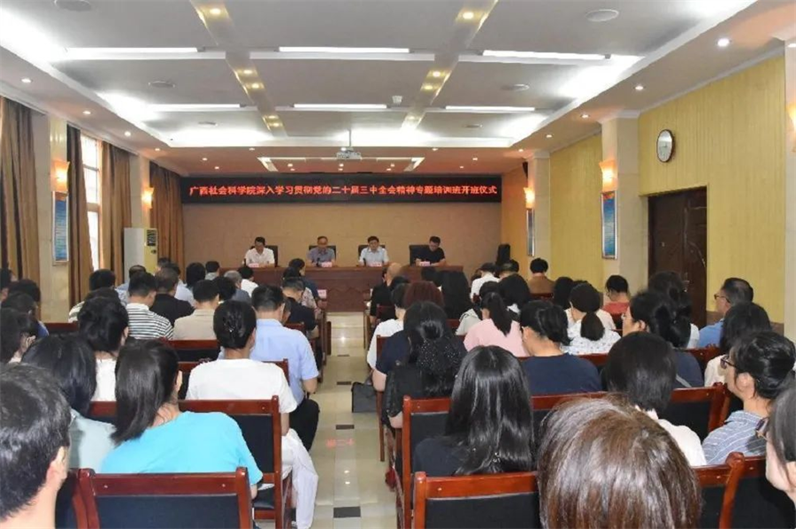 10月9日至11日,廣西社科院舉辦為期3天的深入學(xué)習(xí)貫徹黨的二十屆三中全會精神專題培訓(xùn)班,深入學(xué)習(xí)貫徹習(xí)近平新時代中國特色社會主義思想和黨的二十屆三中全會精神,深刻領(lǐng)悟習(xí)近平總書記關(guān)于全面深化改革的一系列新思想、新觀點(diǎn)、新論斷,深入領(lǐng)會自治區(qū)黨委十二屆八次全會精神。院黨組書記、院長陳立生作開班動員講話。