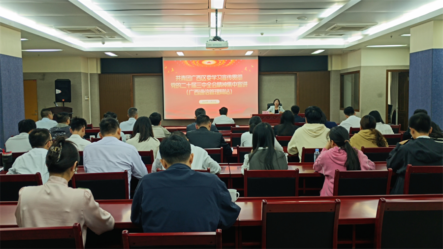 11月22日,自治區(qū)通信管理局聯(lián)合共青團(tuán)廣西區(qū)委開(kāi)展學(xué)習(xí)貫徹黨的二十屆三中全會(huì)精神集中宣講活動(dòng),全局及局屬單位全體黨員干部職工參加活動(dòng)。