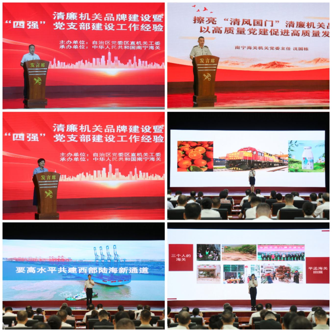 8月22日,自治區(qū)黨委區(qū)直機(jī)關(guān)工委在南寧海關(guān)舉辦清廉機(jī)關(guān)品牌建設(shè)暨“四強(qiáng)”黨支部建設(shè)工作經(jīng)驗交流活動,現(xiàn)場觀摩南寧海關(guān)清廉機(jī)關(guān)品牌建設(shè)及“四強(qiáng)”黨支部建設(shè)成果展示,總結(jié)交流經(jīng)驗,部署下一步工作,推動清廉機(jī)關(guān)建設(shè)提質(zhì)增效,著力鍛造堅強(qiáng)有力的機(jī)關(guān)基層黨組織。自治區(qū)黨委區(qū)直機(jī)關(guān)工委副書記黃向明、南寧海關(guān)政治部主任卓漢濤出席活動并講話。