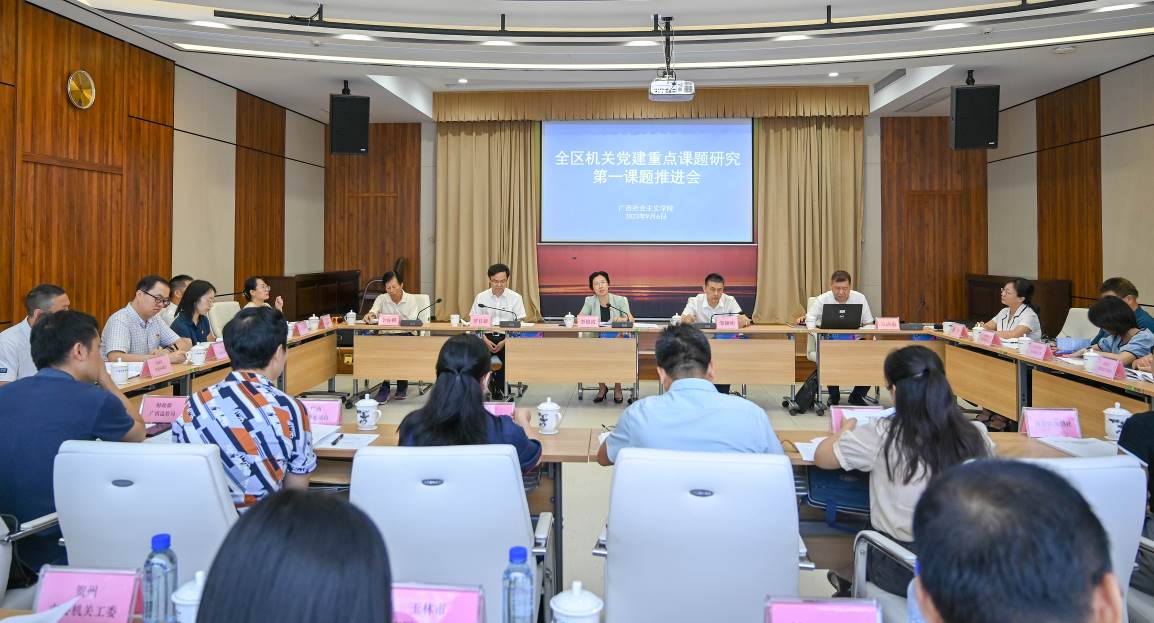 9月6日,2023年全區(qū)機(jī)關(guān)黨建重點(diǎn)課題研究第一課題推進(jìn)會(huì)在廣西社會(huì)主義學(xué)院召開。自治區(qū)黨委統(tǒng)戰(zhàn)部副部長(zhǎng)、廣西社會(huì)主義學(xué)院黨組書記李銀霞出席會(huì)議并致辭。自治區(qū)黨委區(qū)直機(jī)關(guān)工委副書記鄒穎明出席會(huì)議并講話。第一課題組34個(gè)成員單位的課題報(bào)告執(zhí)筆人圍繞“堅(jiān)持用習(xí)近平新時(shí)代中國(guó)特色社會(huì)主義思想凝心鑄魂研究”開展交流研討,專家進(jìn)行點(diǎn)評(píng)指導(dǎo)。