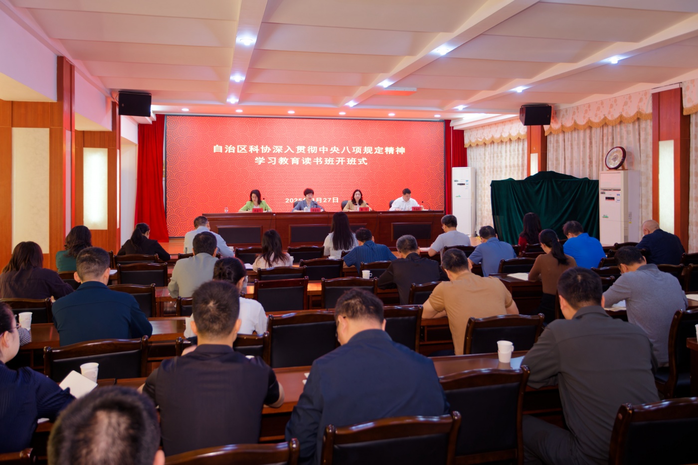 3月27日,自治區(qū)科協(xié)舉辦深入貫徹中央八項(xiàng)規(guī)定精神學(xué)習(xí)教育讀書(shū)班。自治區(qū)科協(xié)黨組書(shū)記、副主席梁春花作開(kāi)班動(dòng)員講話并參加學(xué)習(xí),黨組班子成員、機(jī)關(guān)和事業(yè)單位處級(jí)以上干部參加讀書(shū)班學(xué)習(xí)。讀書(shū)班采取會(huì)議學(xué)習(xí)及黨組班子引領(lǐng)學(xué)、領(lǐng)導(dǎo)干部集中學(xué)、黨支部集體學(xué)相結(jié)合的方式進(jìn)行。