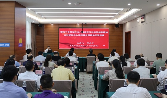 專題學習輔導邀請了自治區(qū)黨校鄭永豐教授作題為《鍥而不舍貫徹中央八項規(guī)定及其實施細則精神以過硬作風為高質(zhì)量發(fā)展提供堅強保障》報告。鄭永豐教授以中央八項規(guī)定精神為核心主線,系統(tǒng)解讀了中央八項規(guī)定的出臺背景、核心要義、實踐要求及最新精神,同時結(jié)合典型案例精準剖析違反中央八項規(guī)定精神的風險點和防范措施,幫助大家深刻理解開展深入貫徹中央八項規(guī)定精神學習教育不是“一陣風”,而是管黨治黨的長期戰(zhàn)略。大家表示,通過專題學習輔導,對紀律紅線有了更直觀、更深刻的認知,警示教育作用顯著。今后,將積極把學習成果轉(zhuǎn)化為干事創(chuàng)業(yè)的強大動力,推動全面從嚴治黨向縱深發(fā)展,以更加優(yōu)良的作風、更加昂揚的姿態(tài),為廣西氣象高質(zhì)量發(fā)展作出新的更大貢獻。