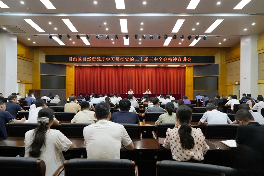 8月19日,自治區(qū)自然資源廳召開學(xué)習(xí)貫徹黨的二十屆三中全會精神宣講會,就進一步學(xué)習(xí)宣傳貫徹提出明確要求、作出具體安排。廳黨組書記、廳長張文軍進行宣講,廳黨組成員、副廳長鄭杰忠主持會議。?