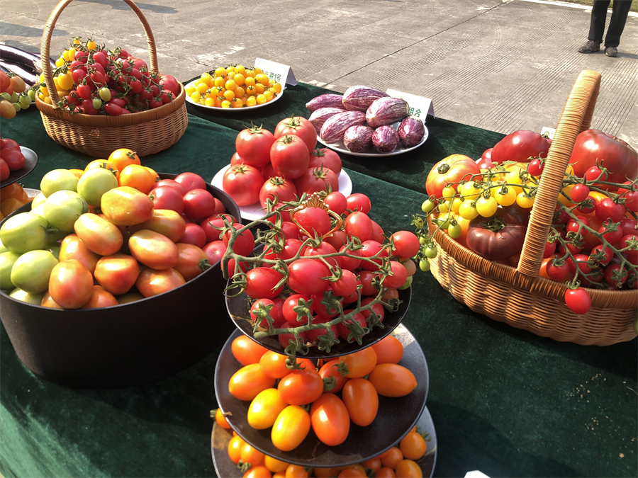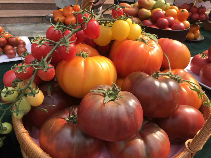 ▲成果展示區(qū)里琳瑯滿(mǎn)目的番茄品種。