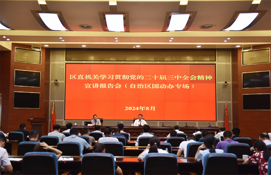 8月23日,區(qū)直機關宣講團學習貫徹黨的二十屆三中全會精神宣講報告會(自治區(qū)國動辦專場)舉行,自治區(qū)黨委講師團特聘教授(專家)、中共廣西區(qū)委黨校教授陶建平作主題宣講報告。自治區(qū)國動辦黨組成員、副主任夏振林主持會議。