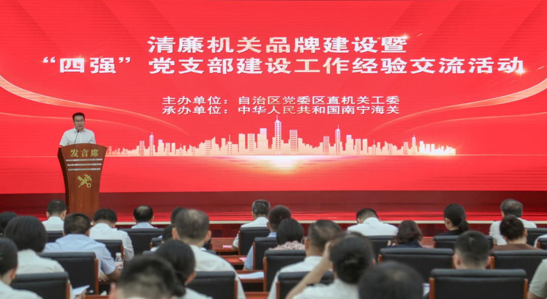 8月22日,自治區(qū)黨委區(qū)直機(jī)關(guān)工委在南寧海關(guān)舉辦清廉機(jī)關(guān)品牌建設(shè)暨“四強(qiáng)”黨支部建設(shè)工作經(jīng)驗交流活動,現(xiàn)場觀摩南寧海關(guān)清廉機(jī)關(guān)品牌建設(shè)及“四強(qiáng)”黨支部建設(shè)成果展示,總結(jié)交流經(jīng)驗,部署下一步工作,推動清廉機(jī)關(guān)建設(shè)提質(zhì)增效,著力鍛造堅強(qiáng)有力的機(jī)關(guān)基層黨組織。自治區(qū)黨委區(qū)直機(jī)關(guān)工委副書記黃向明、南寧海關(guān)政治部主任卓漢濤出席活動并講話。